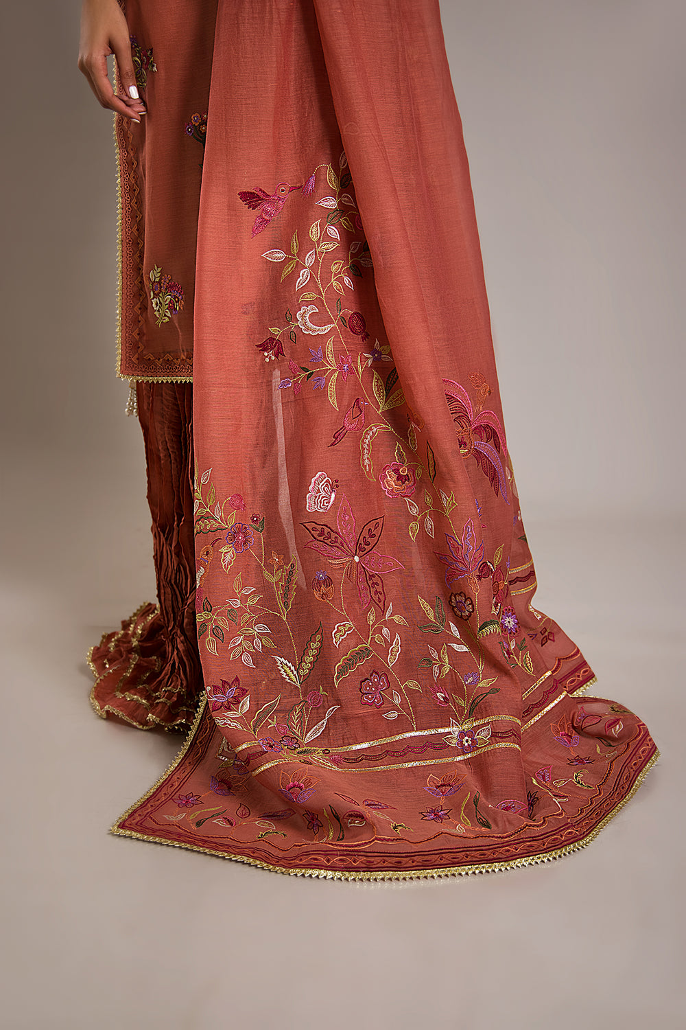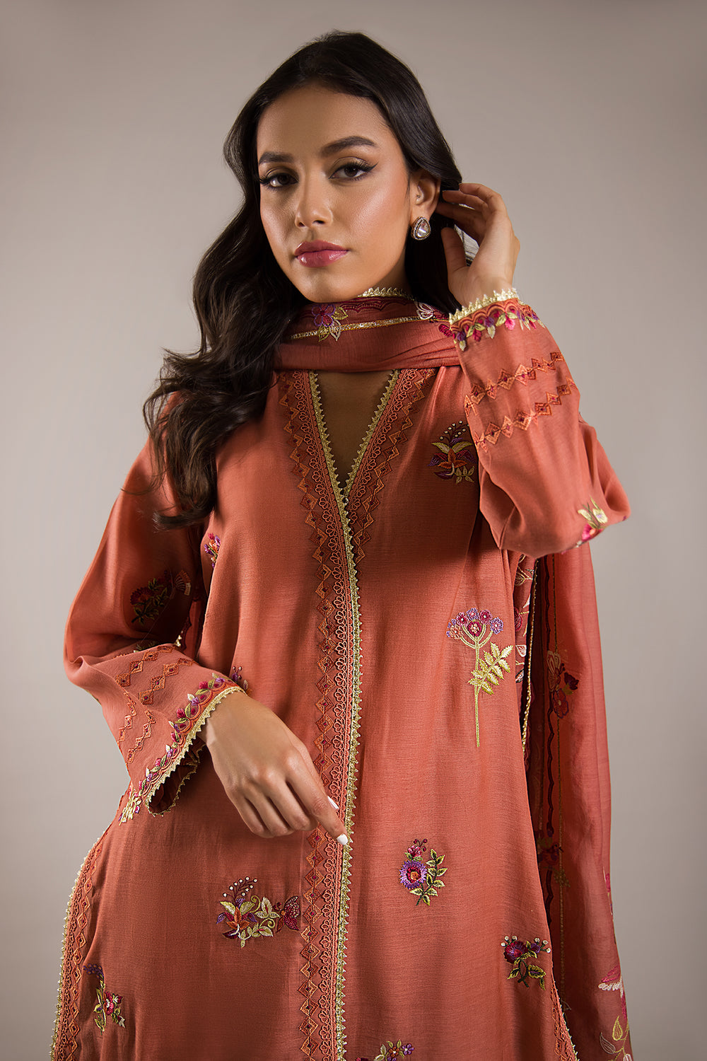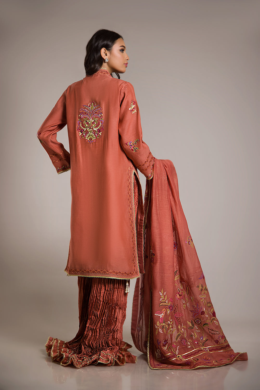 Experience the beauty of modern style with MURJAN. Featuring a sleek and modern line cut, it is embroidered and adorned with a unique and intricate pattern. Its flowy dupatta completes the perfect ensemble for any gathering. Crafted from the finest materials, this angarkha is designed for the modern woman.