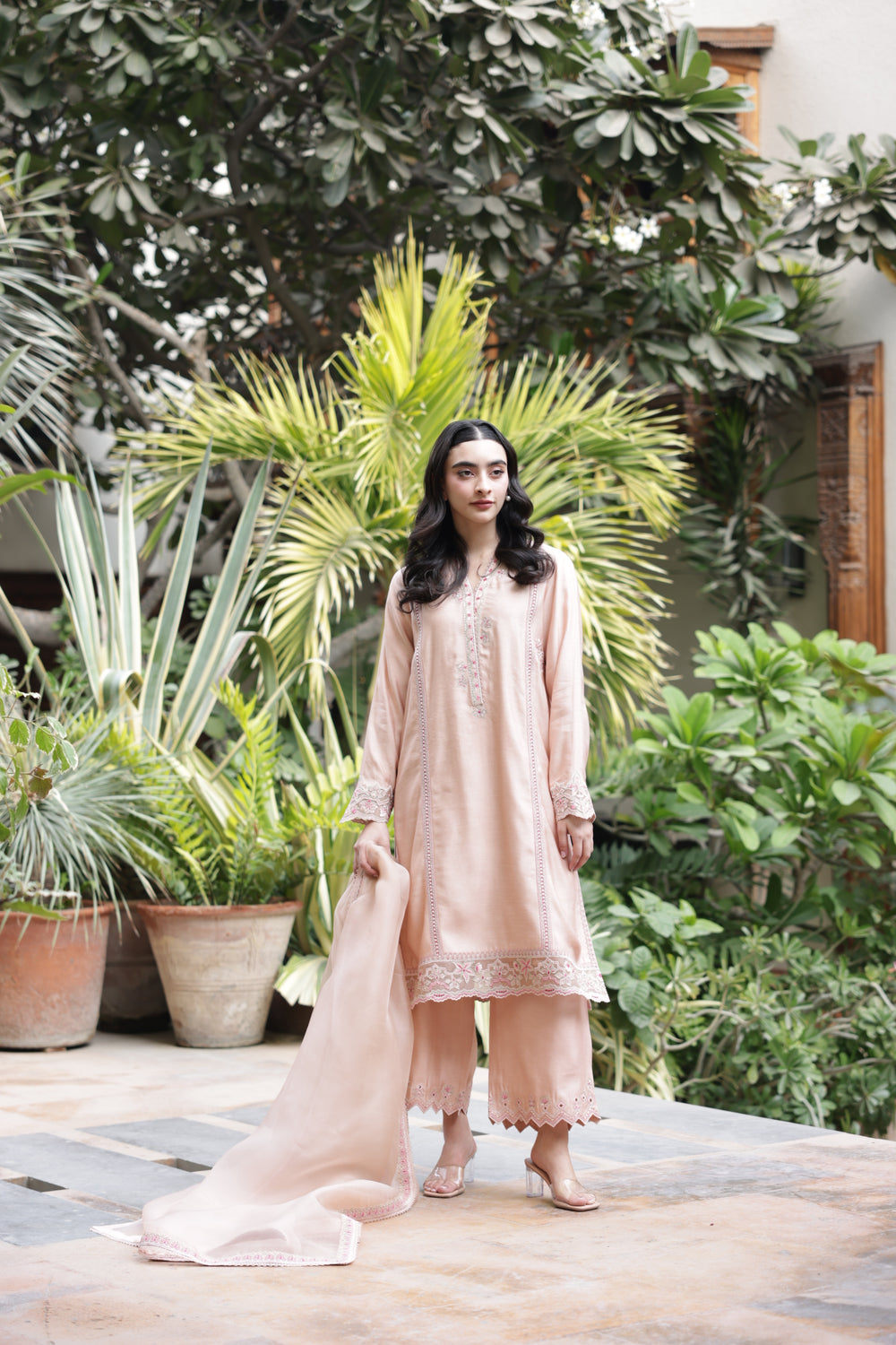 The dupatta is beautifully embellished with intricate thread